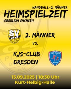 Zum zweiten Heimspiel der Saison empfängt die II.Mannschaft am Samstag den KJS-Club Dresden in der Plauener Kurt-Helbig-Halle. Nach einer knappen und vielleicht auch unnötigen Niederlage im ersten Heimspiel sowie einem noch knapper erkämpften Sieg beim HSV Dresden in der Vorwoche wollen die Schwarz-Gelben nun vor Ihren Fans beweisen, dass sie erfolgreich in der Liga angekommen sind. Der Gegner aus der Landeshauptstatt hat sein Auftaktspiel beim Auer Juniorteam verloren und möchte sicher gegen den Aufsteiger aus Plauen das Punktekonto wieder ausgleichen. Somit haben wir beste Voraussetzungen für ein spannendes Spiel. Aber auch die Ansetzung am Samstag um 18:30 Uhr und das zuvor stattfindende Spiel der Frauen gegen den SC Riesa sind ein guter Grund für einen Handballsamstag für den es auch wieder ein Kombi-Ticket für beide Begegnungen gibt.