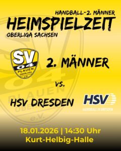 Am gestrigen Sonntag stand das erste Heimspiel im Jahr 2026 auf dem Plan. Mit dem HSV Dresden war ein Gegner angereist, der super in die Rückserie gestartet ist. Mit einem souveränen Auswärtssieg in Görlitz konnten sie ein deutliches Zeichen setzen. Mit voller Kapelle kamen sie nun auch mit der Absicht nach Plauen, die Punkte aus dem Hinspiel zurückzuholen. Wir sind mit der gleichen Aufstellung wie gegen Limbach in das Spiel gestartet, welche schon in dem Spiel gezeigt hat, dass man lange beim Spitzenreiter gegenhalten konnte. Das Spiel begann gleich mit ordentlich Tempo. Wir legten schnell 3:1 vor, die Gäste glichen nach 6 Minuten zum 3:3 aus. Dann konnten wir uns in der Abwehr besser auf die Angreifer einstellen und so konnten wir uns auf 6:3 absetzen. Bis zum 11:9 in der 19. Minute agierten beide Mannschaften auf Augenhöhe. Eine 2 Minuten Strafe gegen die Dresdner nutzten wir um bis zur Pause einen kleinen Zwischenspurt einzulegen. Innerhalb von 6 Minuten konnten wir unseren Vorsprung auf 16:10 ausbauen. Bis zur Halbzeit ließen wir nicht locker und konnten ein 19:12 mit in die Kabinen nehmen.