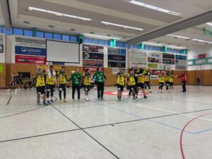 Für die beiden kamen dann Rico S. Und Levin ins Spiel. Beide machten genau da weiter, wo ihre Vorgänger aufhörten, so dass wir nicht vom Spielfluss abkamen. Philipp zeigte auch in der 2. Halbzeit eine starke Leistung im Tor und wurde zum sicheren Rückhalt. Die Abwehr arbeitete zudem mit Lukas und Rico im Zentrum sehr gut. Die gewonnenen Bälle wurden sofort genutzt, um schnelle Tore durch Levin zu erzielen. In der 50. Minute stand es 25:21. Dann folgte unsere stärkste Phase, bis zur 57. Minute zogen wir vorentscheidend auf 30:22 davon. Viktor der wieder ein starkes Spiel zeigte, konnte in der Phase allein 5 seiner insgesamt 10 Treffer beisteuern. Nach den hart umkämpften 60 Minuten stand es 31:25.
